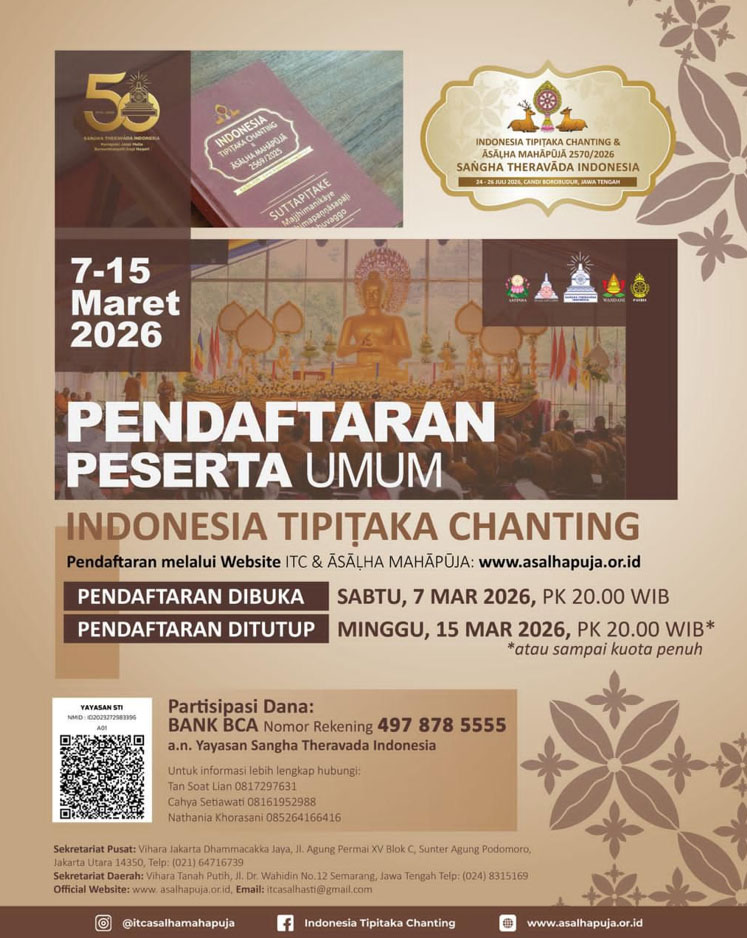 - Wajib membawa Surat Rekomendasi dari Vihara/Organisasi atau Kartu Umat/Vihara saat registrasi ulang.